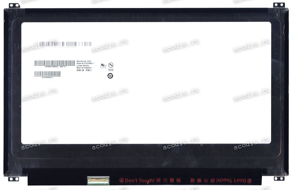 B133HAN02.1, B133HAN02.0, B133HAN02.5 (без ушей), B133HAN02.7 (18010-13301000, 71% NTSC), B133HAN03.2 (52%), B133HAN06.0 (Dell 052F4N), LC133LF5L01 (72%), LTN133HL03-201 (72%, 09T7WM), LTN133HL06 (Dell 0PVFF5 PVFF5), LTN133HL08 (Dell 09T7WM), N133HCE-EN1 (18010-13313000), N133HCE-GA1 (72%), N133HCE-EAA Rev. B2 (Dell 0DG7J1), N133HSE-EA1 (72% NTSC), N133HSE-EA3 (72% NTSC), N133HSE-EB1, N133HSE-EB3 (72%), LP133WF2-SPL2, LP133WF2-SPL3, LP133WF2-SPL6, LP133WF2-SPL4, LP133WF2-SPL1, NV133FHM-N43 (SKU 2DC5R), NV133FHM-N44, NV133FHM-N45, NV133FHM-N63 (72%, DP/N: 02M9WH), частичный аналог B133HTN01.4 (TN, P/N: 18010-13300900),HXTE133E27I3P (72%) , У совместимых моделей бывают разные крепления (могут отличатся от фото), рекомендуется их просто демонтировать (откусить).